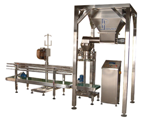 該機主要針對容易揚塵的超細粉末及高精度的包裝要求而開發設計,根據裝在容器下麵的重量傳感器給出的信號完成雙速充填、計量及升降等工作,適用於包裝添加劑、碳粉、滅火器幹粉、其它超細粉末、及有高精度包裝要求的粉末等。